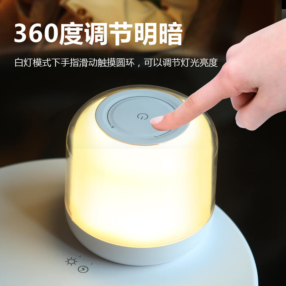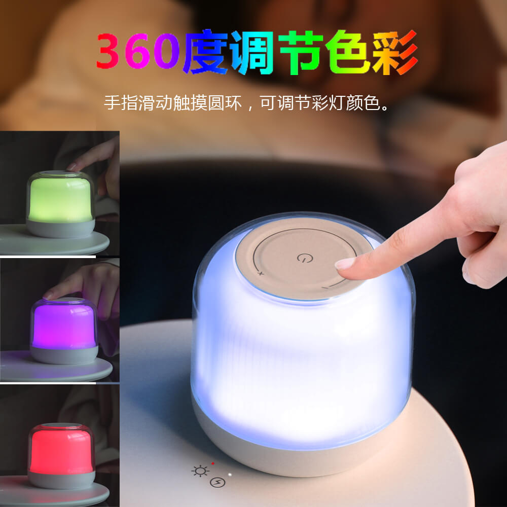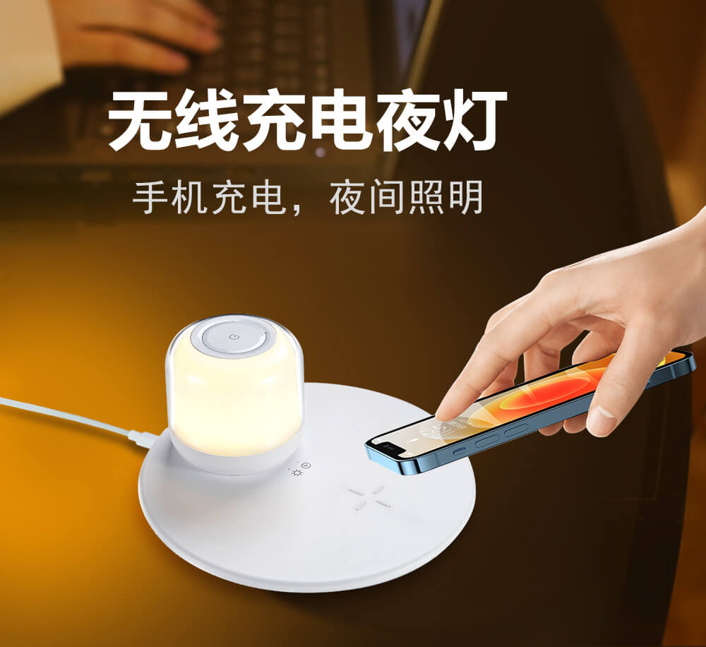 无线快充、分离式磁吸、LED夜灯、护眼暖色温、360度调节明暗、360度调节色彩、无频闪、触控开关