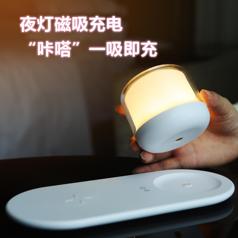 无线快充、分离式磁吸、LED夜灯、护眼暖色温、360度调节明暗、360度调节色彩、无频闪、触控开关